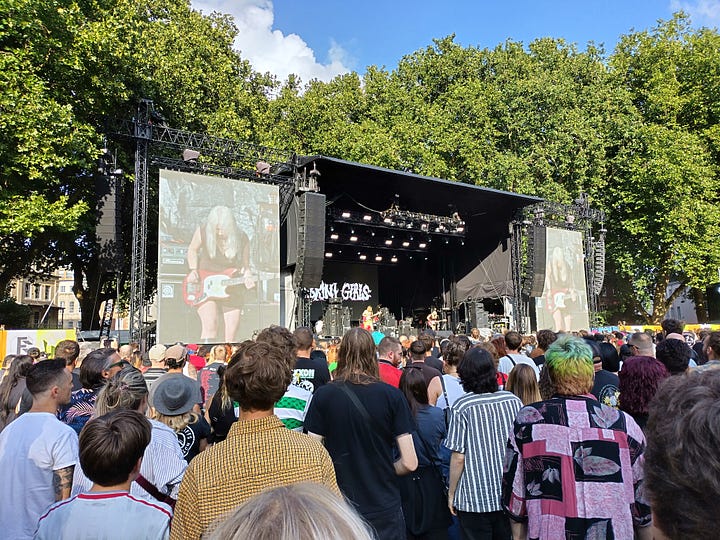 They created a mosh-pit half way through their first song, at 6pm. That says all you need to know about their infectious passion. They spoke out against our politicians and their complicity in the war on Gaza, not to mention police, TERFs, homophobia and much else besides. Punk music has a long history of resisting fascism and racism, and this was punk as fuck. It was fun, it was urgent, it was powerful. In short, they were phenomenal. ⍟⍟⍟⍟⍟